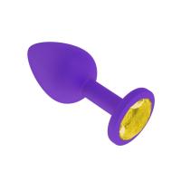 Анальная втулка силиконовая фиолетовая с желтым кристаллом маленькая (519-11 YELLOW-DD)
