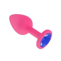 Анальная втулка силиконовая розовая с синим кристаллом маленькая (516-07 BL DD)